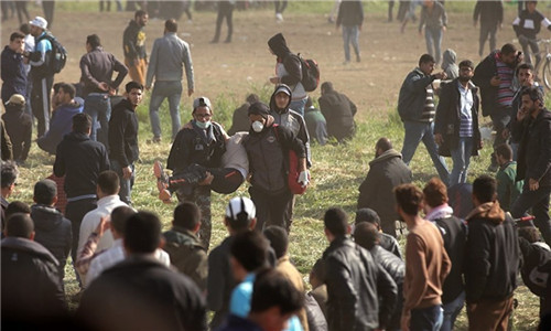 海外网3月31日电巴勒斯坦抗议者与以色列士兵在巴以边境爆发冲突,导致至少11名巴勒斯坦人死亡,一千多人受伤。