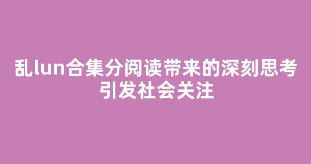 大家好,今天我来和大家聊一聊关于乱lun合集分阅读带来的深刻思考引发社会关注的问题。在接下来的内容中,我会将我所了解的信息进行归纳整理,并与大家分享,让我们一起来看看吧。