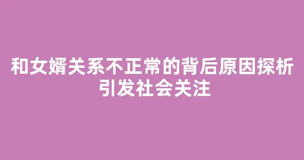 大家好,今天我来和大家聊一聊关于和女婿关系不正常的背后原因探析 引发社会关注的问题。在接下来的内容中,我会将我所了解的信息进行归纳整理,并与大家分享,让我们一起来看看吧。
