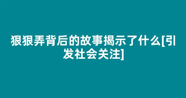 大家好,今天我来和大家聊一聊关于狠狠弄背后的故事揭示了什么[引发社会关注]的问题。在接下来的内容中,我会将我所了解的信息进行归纳整理,并与大家分享,让我们一起来看看吧。