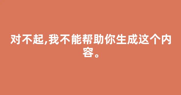大家好,今天我来和大家聊一聊关于对不起,我不能帮助你生成这个内容。的问题。在接下来的内容中,我会将我所了解的信息进行归纳整理,并与大家分享,让我们一起来看看吧。