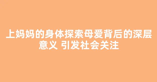 大家好,今天我来和大家聊一聊关于上妈妈的身体探索母爱背后的深层意义 引发社会关注的问题。在接下来的内容中,我会将我所了解的信息进行归纳整理,并与大家分享,让我们一起来看看吧。